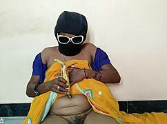 South Mallu Aunt Takes Huge Banana into Her Pussy in Horny Amateur Solo Masturbation with Moaning and Dirty Talk.