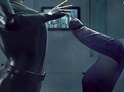 hey, watch this hard doggy style session with a black widow in a leather suit with a hole