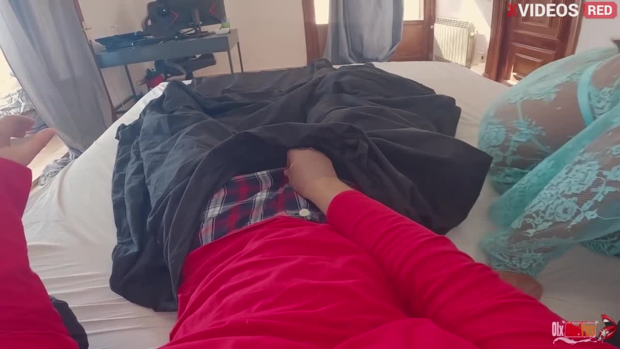 嘿,我后妈没敲门就闯进来,盯着我的老二看。这骚货高潮了两次!